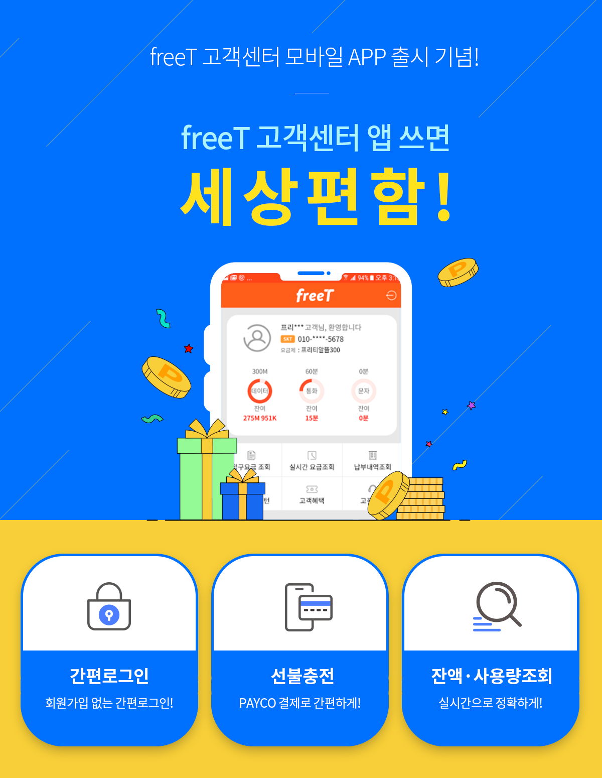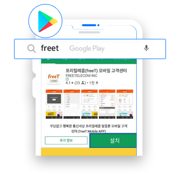 아래쪽 QR코드를 찍어 Google play 스토어에서 freeT 고객센터 앱을 다운로드 받으세요.
